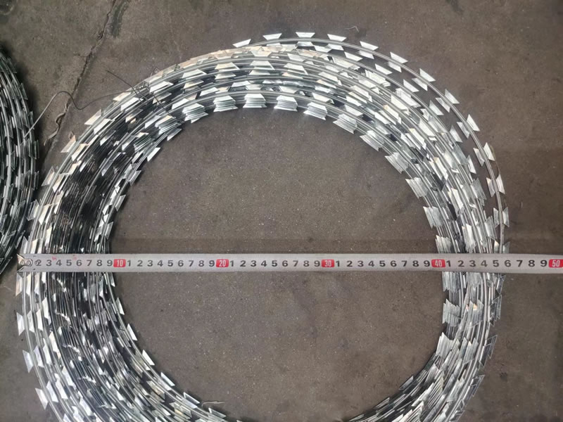 1. 高强度与抗破坏:刀片由热镀锌钢板或不锈钢薄板冲压而成,质地坚硬且锋利。芯线采用高张力钢丝,为整个刺网提供强大支撑,使其具备极高强度,难以被轻易破坏,有效抵御外力入侵。