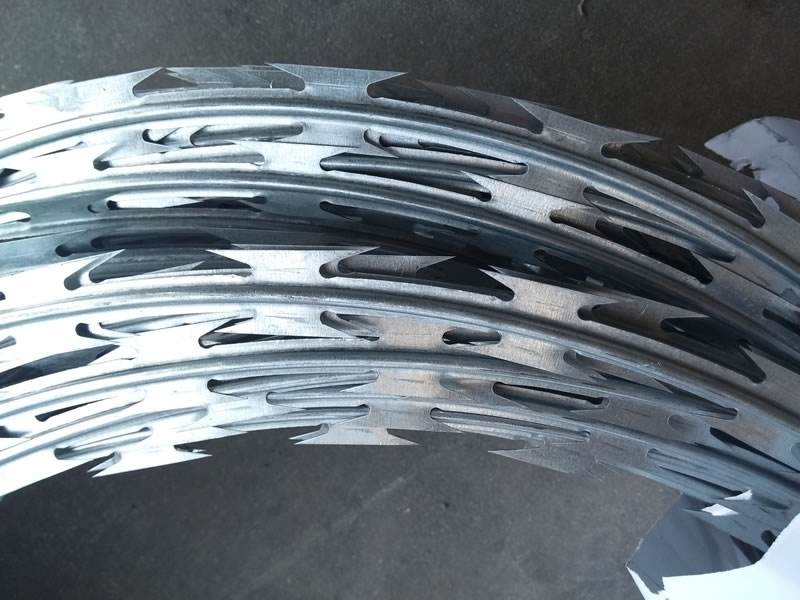 1. 高强度与抗破坏:刀片由热镀锌钢板或不锈钢薄板冲压而成,质地坚硬且锋利。芯线采用高张力钢丝,为整个刺网提供强大支撑,使其具备极高强度,难以被轻易破坏,有效抵御外力入侵。